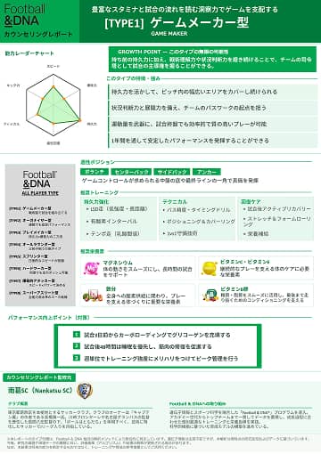 個人のタイプに合わせ推奨ポジション・トレーニング・栄養素など、サッカーに特化したアドバイスが詳しく書かれています。